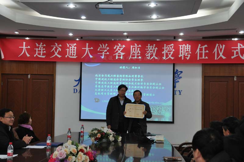 2013年1月9日,應(yīng)大連交通大學(xué)邀請(qǐng),我公司董事長(zhǎng)周和生先生受聘為大連交通大學(xué)工程管理類學(xué)科客座教授,頒發(fā)客座教授聘書。