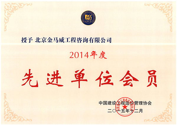 公司榮獲中國建設工程造價管理協(xié)會“2014年度先進單位會員”稱號,湖北分公司經理嚴俊榮獲“先進個人會員”稱號。